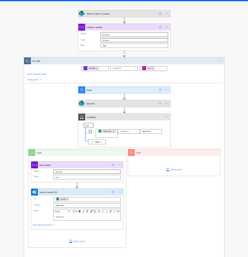 เราสามารถใช้ Do until โดยตั้งเงื่อนไขว่า “ให้ทำซ้ำไปเรื่อยๆ จนกว่า (Do until) สถานะของเอกสาร (Status) จะเท่ากับ ‘Approved’”